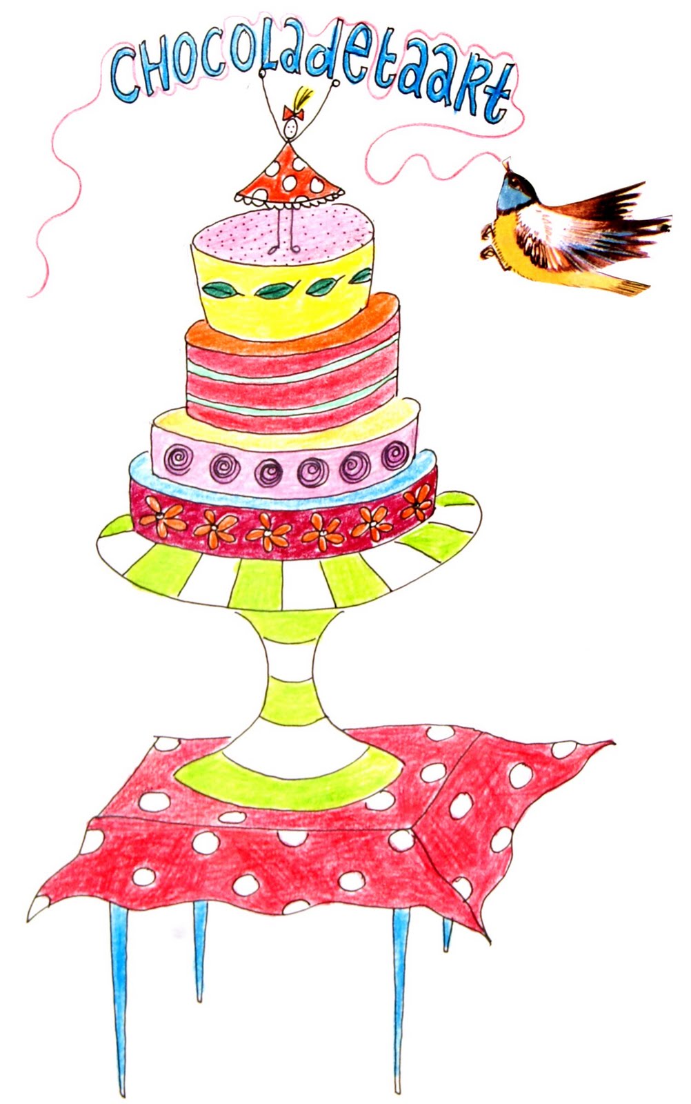 Mmmm.... klinkt erg lekker (mooie tekening ook!) maar wij houden het vandaag op een slagroomtaart met foto!